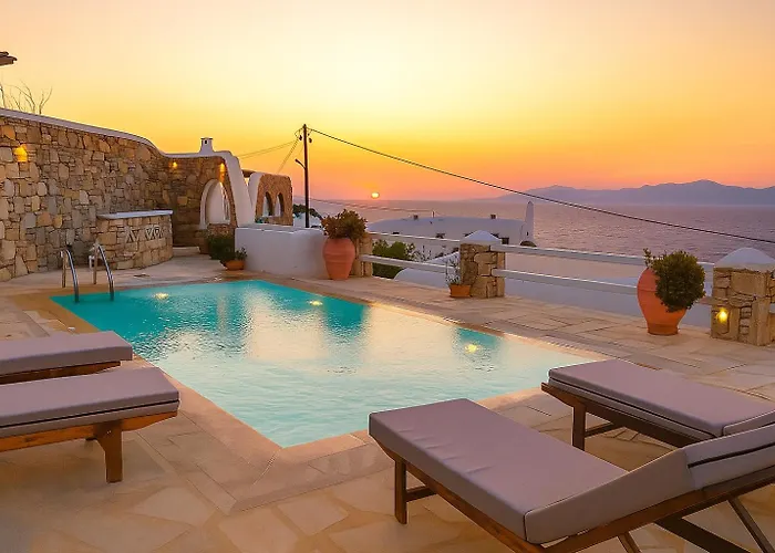 Cavo Apollon Sunset Pool Villa har infinity-pool til afslapning. 10 minutters kørsel fører til Matoyianni-gaden og Lille Venedig er kun 5 minutters kørsel derfra.